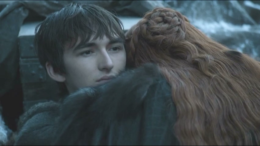 兩人重逢後到舊神樹下抬槓,布蘭表示這次回來有事情要跟冏恩說,三傻提到布蘭是史塔克家唯一還在世的直系男性,也是目前臨冬城的正統繼承人。但布蘭表示自己已經是觀落陰公會的會長,不能繼承臨冬城了。